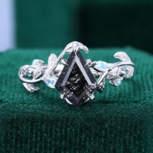 Edgy meets ethereal. The rutilated quartz center reflects mysterious depth, while moonstone side accents add an enchanting glow — perfect for the modern romantic with a bohemian heart.