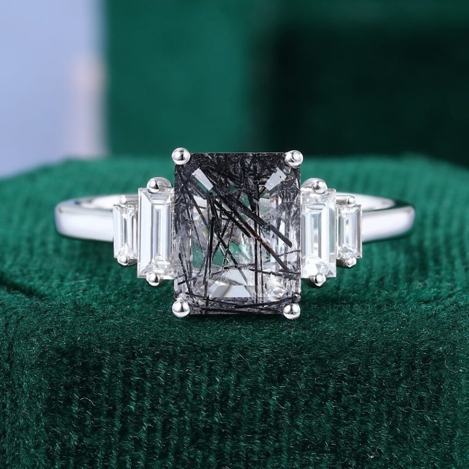 Black Rutilated Quartz Engagement Rings (Bold & Modern)