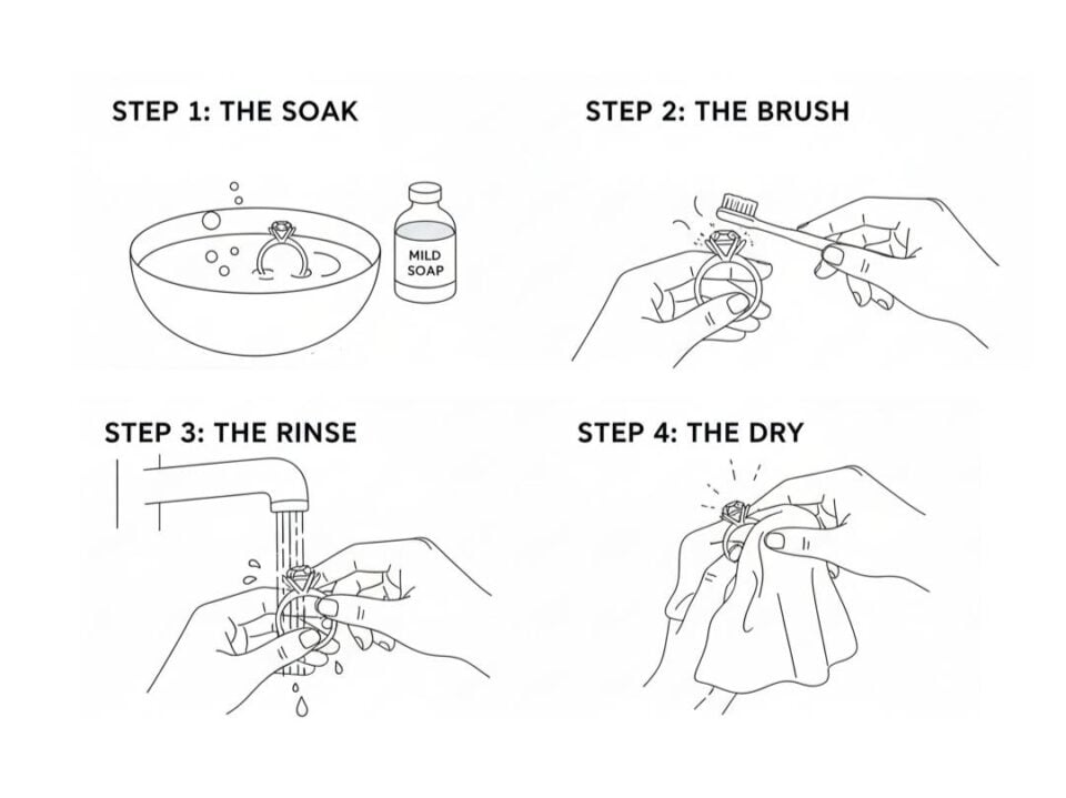 - The Brush: Gently scrub behind the stone and around the prongs with a soft-bristled baby toothbrush. This is where 90% of the “dullness” accumulates.
