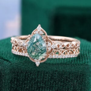 Selecting a moss agate ring involves more than just aesthetics. It’s also about the ring’s shape, gap, and long-term comfort. Since no two stones are alike, a curated approach ensures the best harmony. Eliminate the guesswork with MollyJewelryUS’s Moss Agate Bridal Ring Sets, which are precision-crafted to fit perfectly with our signature cuts. Click here to explore our collection and complete your dream bridal stack.