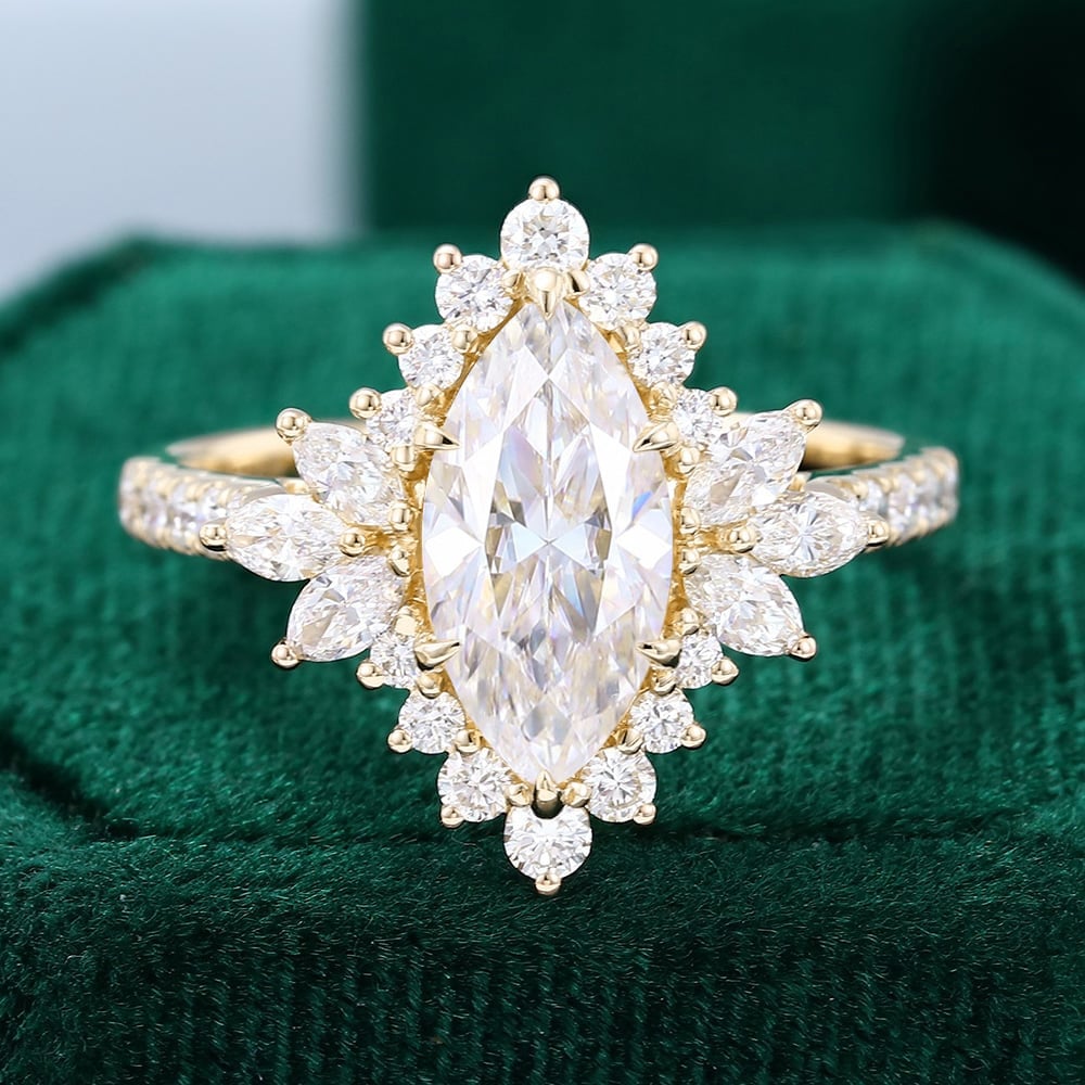 - Lab-Grown Diamond Option: Ideal for buyers seeking “diamond status” with ethical sourcing. Find 1.0–1.5 carat D–E color, VVS/VS1 clarity stones for $1,000–$2,500, paired with a 14K or 18K gold halo or pavé setting.