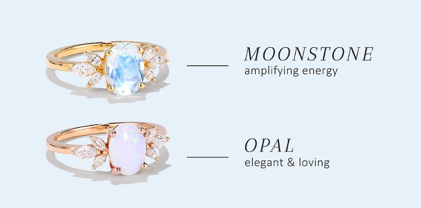 Setting Feature | Opal: Fragile Beauty | Moonstone: Versatile Elegance |