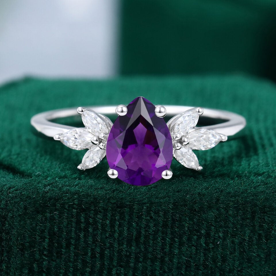 At MollyJewelryUS, you can choose from an array of captivating cuts—cushion cut amethyst, princess cut, pear cut, and more—each set to highlight the gem’s natural clarity, color, and brilliance in settings ranging from classic diamond ring styles to nature-inspired and dainty bands. Each ring is meticulously handcrafted to highlight the natural beauty of amethyst, paired with premium metals like 10k/14k/18k yellow gold, white gold, rose gold, platinum, and sterling silver to match your personal style.