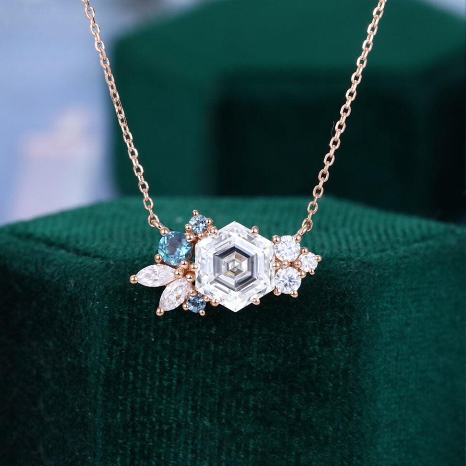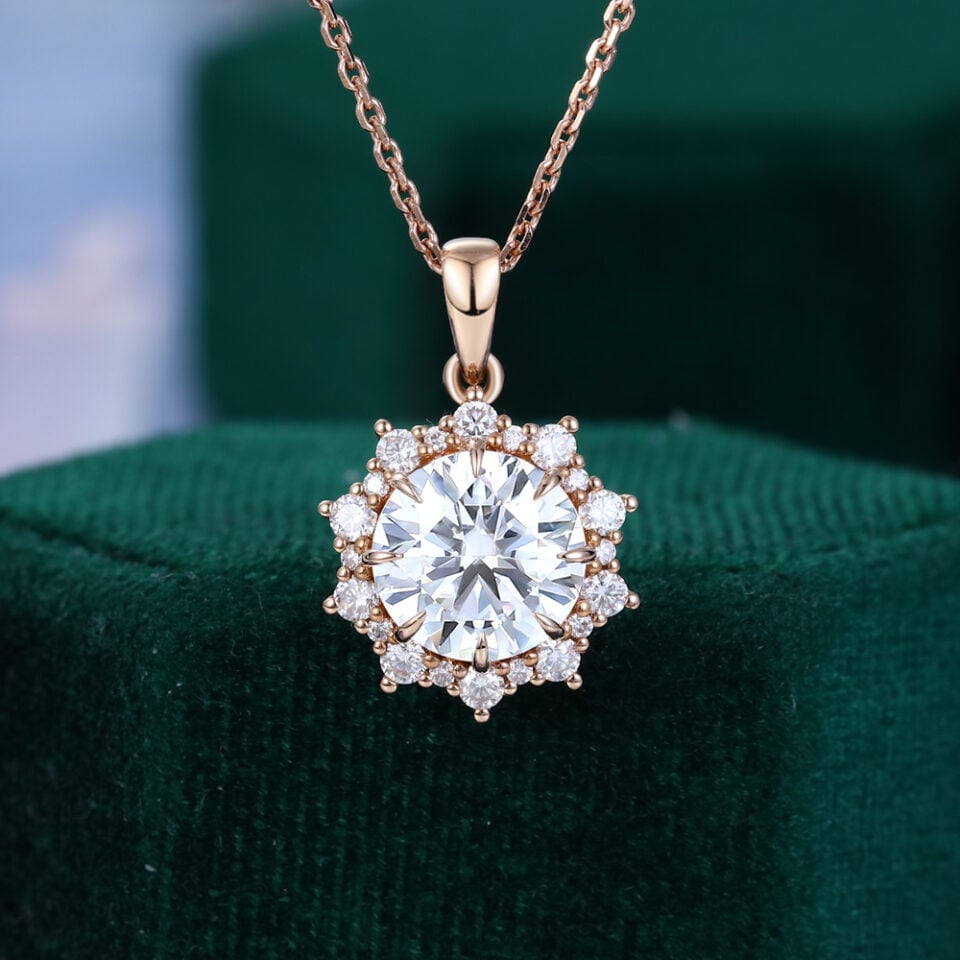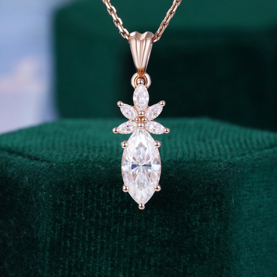 To choose the perfect moissanite necklace, consider your preferences for stone shape (round, square, heart), metal color (white, yellow, rose), and chain style. You can also read customer reviews on the product page to help with your choice. The most important thing is finding a piece that reflects your personal style.