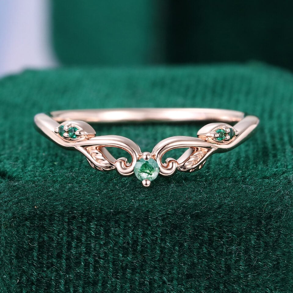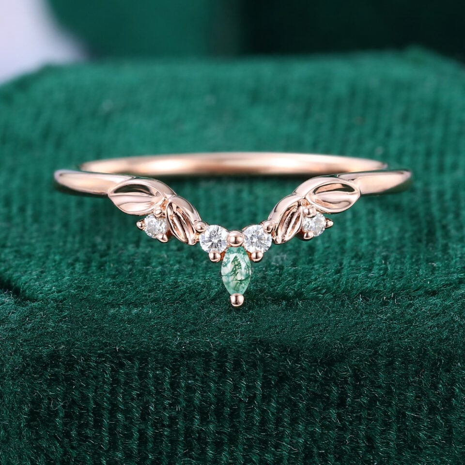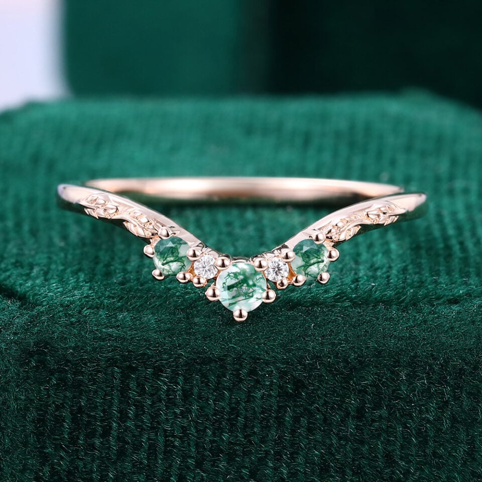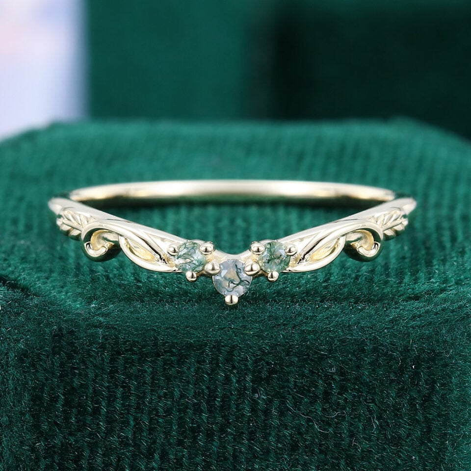 Moss Agate Wedding Bands