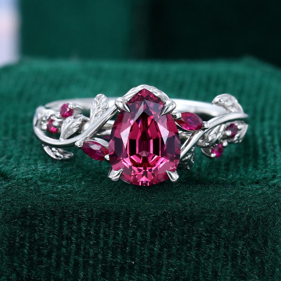 • Halo: A circle of smaller stones around the center stone to add extra sparkle and make the pear stone appear larger.