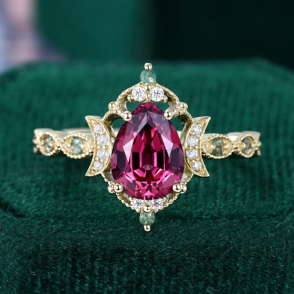 MollyJewelryUS 14K Rose Gold Pear Shaped Moissanite Engagement Ring for Her