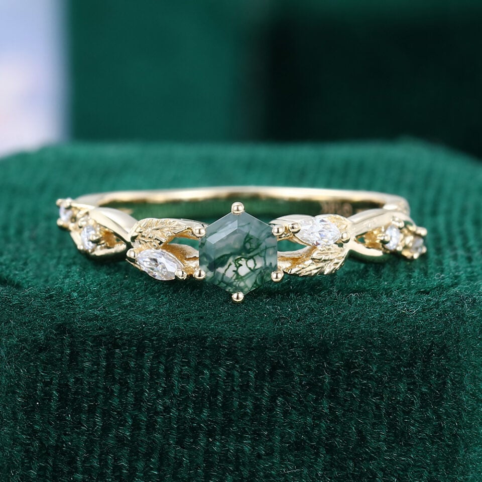 Moss Agate Engagement Rings